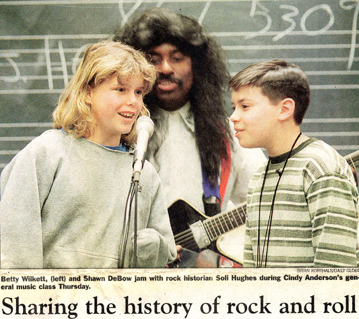 "I grew up listening to that kind of music," said Anderson, as artist Soli Hughes, of Minneapolis, blew out the riffs on his electric guitar before a class of sixth graders.